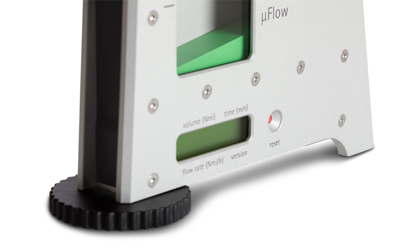 气体流量测量从未如此简单。μFlow具有内置LCD显示器,实时显示经过自动温度和压力修正的标准大气压和零摄氏度条件下的气体体积和流速。该设备更带有气体流量模拟输出信号,可以连接到数据采集系统。由于所有气体流量的测量是实时在线进行的,μFlow的使用无需人力的介入,科技人员得以更少的时间和人力成本开展更多、更专业的分析检测工作。
