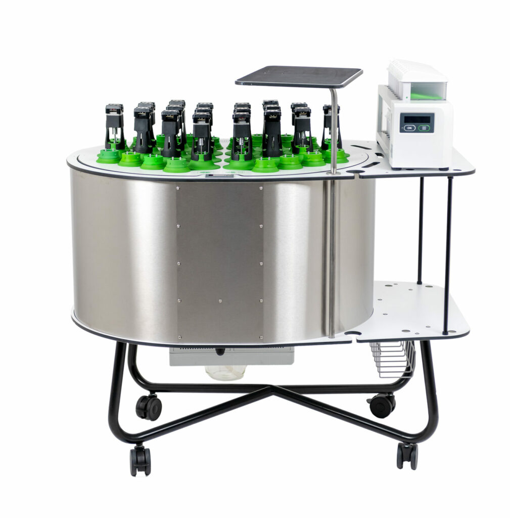 BPC Air设计为可安全站立在地面上的造型,当与碧普仪器的呼吸测试系统搭配使用时,它构成了进行微生物呼吸批次测试分析的理想测试平台。BPC Air只需一个电源插座和大约1.5平方米的矩形地面空间,就可以适应大多数现有的实验室区域。通过集成的脚轮以确保其易于移动,必要时可以重新放置BPC Air。作为一款落地式设备,它还释放了实验室宝贵的台面空间,营造最佳的工作环境。